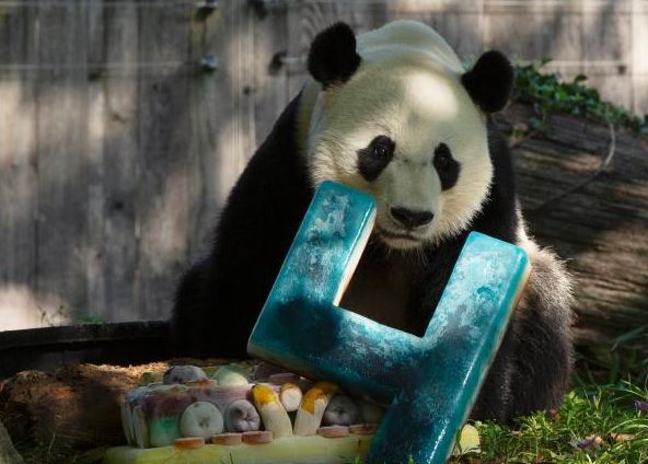 Giant panda Bei Bei walks towards his frozen 4th birthday cake at the Smithsonian National Zoo in Washington, DC, on August 22, 2019. Bei Bei is set to move to China after turning four years old, according to a US-China breeding agreement between the Smithsonian National Zoo and the China Wildlife Conservation Association. (Photo/Agencies)